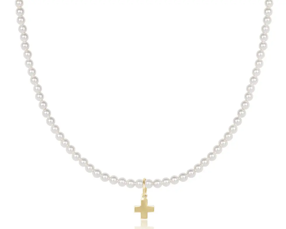 Choker Classic Pearl 3mm Bead - Signature Cross Gold Charm