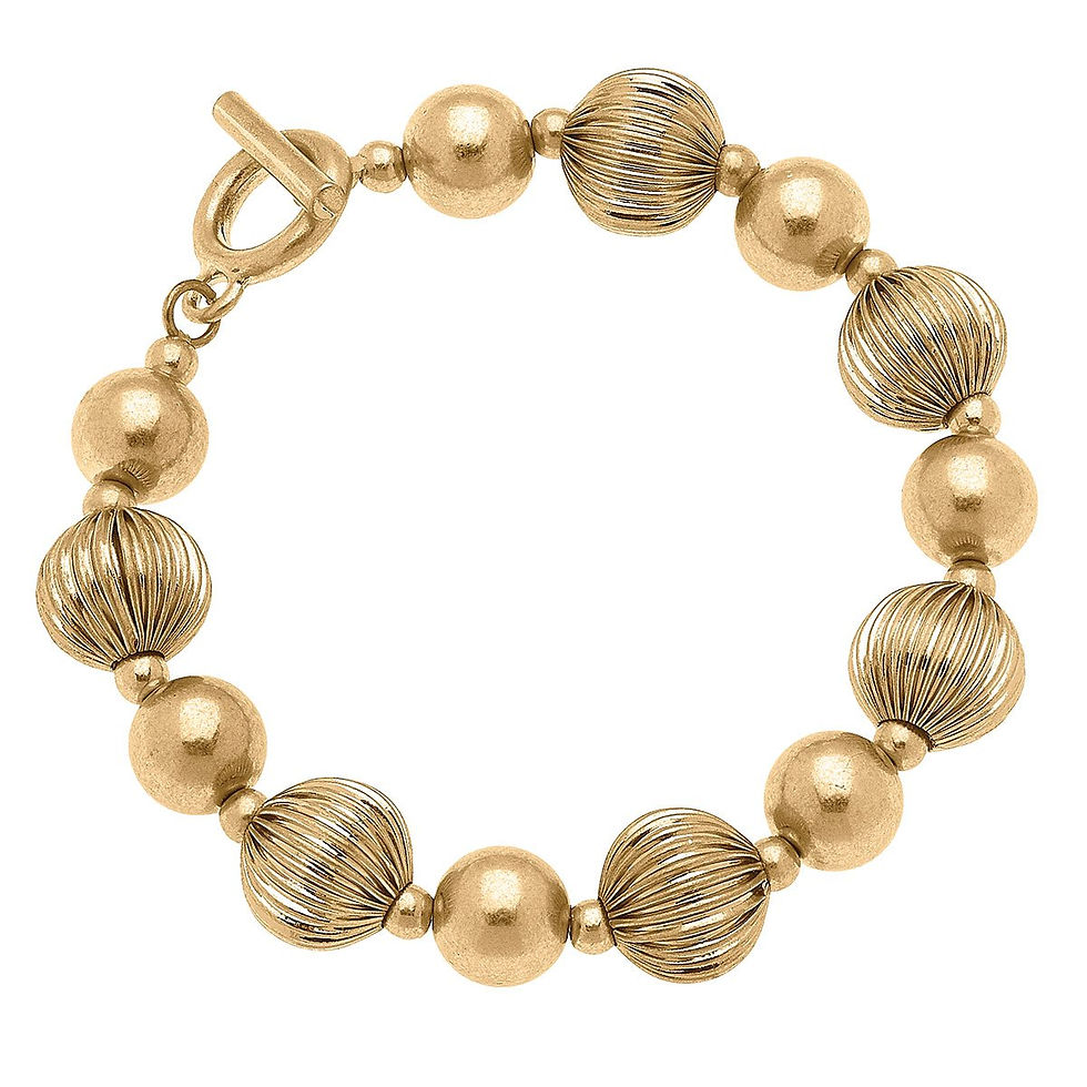 Gold Ribbed Metal Ball Bead Bracelet