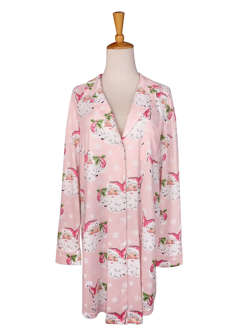 Vintage Blush St Nick Long Sleeve Sleep Dress